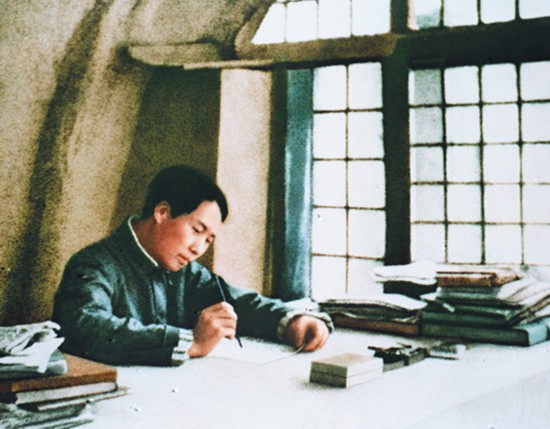 圖為1938年,毛澤東同志在延安窯洞撰寫《論持久戰(zhàn)》(資料照片)。 新華社發(fā)