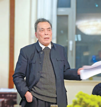 1984年11月7日徐解秀向記者和群眾講述半條被子的故事。 羅開富攝