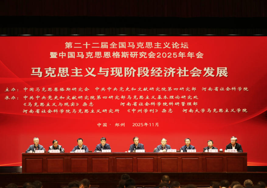 2025年11月29日,第二十二屆全國馬克思主義論壇暨中國馬克思恩格斯研究會2025年年會在河南省鄭州市召開。會議由中國馬克思恩格斯研究會、中共中央黨史和文獻(xiàn)研究院第四研究部、河南省社會科學(xué)院聯(lián)合主辦,主題為“馬克思主義與現(xiàn)階段經(jīng)濟(jì)社會發(fā)展”。中國馬克思恩格斯研究會會長、中共中央黨史和文獻(xiàn)研究院原副院長、中共中央編譯局原局長賈高建出席會議并講話。